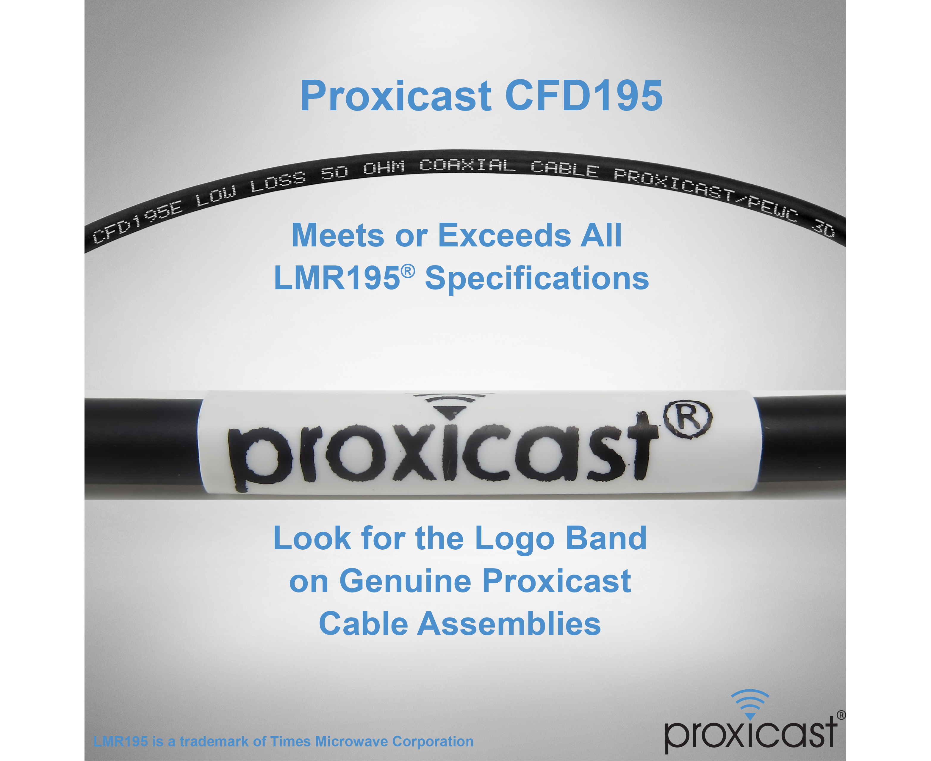 Proxicast's coax extension cable assemblies are constructed with top quality extremely low-loss cable and gold plated connectors. Each cable assembly is fully tested when manufactured. Proxicast recommends CFD195 coax for assemblies up to 10 ft, CFD240 for lengths up to 25 ft and CFD400 for lengths up to 75 ft. Coax runs over 50 ft typically require in-line amplification.