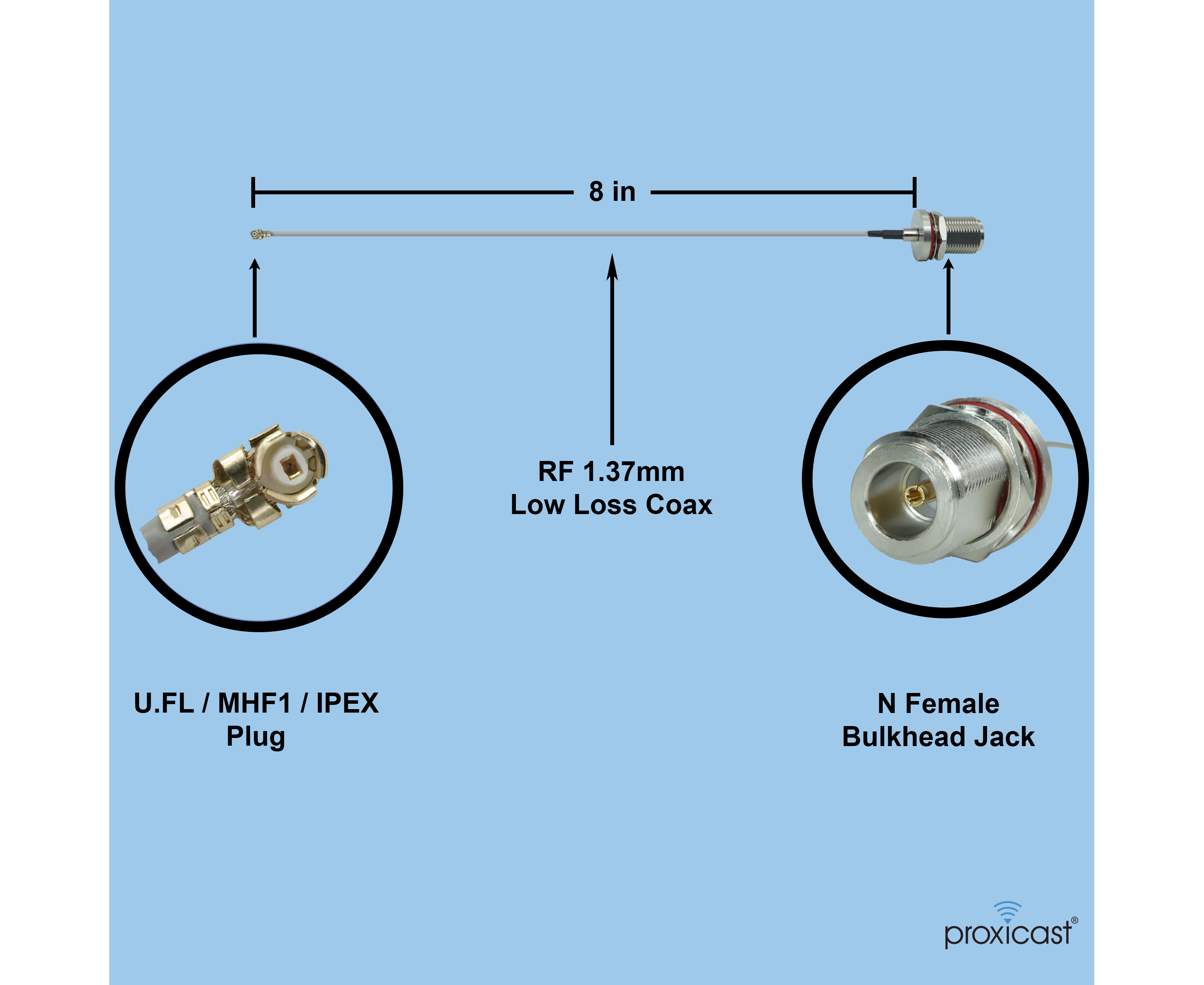 - Title: Proxicast 8 inch U.FL (IPEX) to N Female Ultra Low-Loss 1.37mm Coaxial Pigtail Jumper Cable for 4G, LTE, 5G, WiFi, Bluetooth, ZigBee, 900 MHz, LoRa, Helium, GPS and Other Radio & Antenna Systems