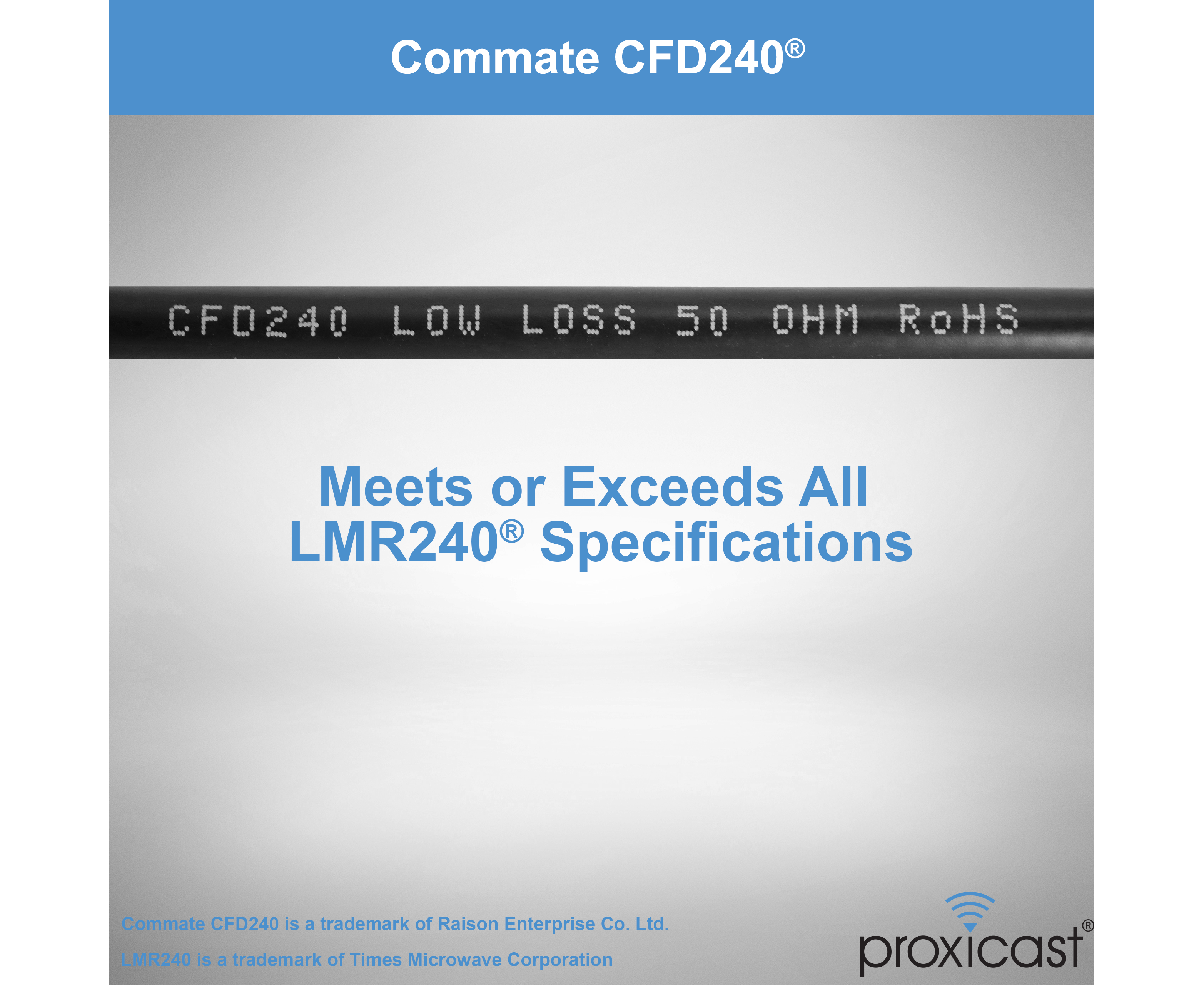The graph above compares Proxicast's CFD240 coax with LMR100 and RG174 coax which are commonly used on magnetic bases.