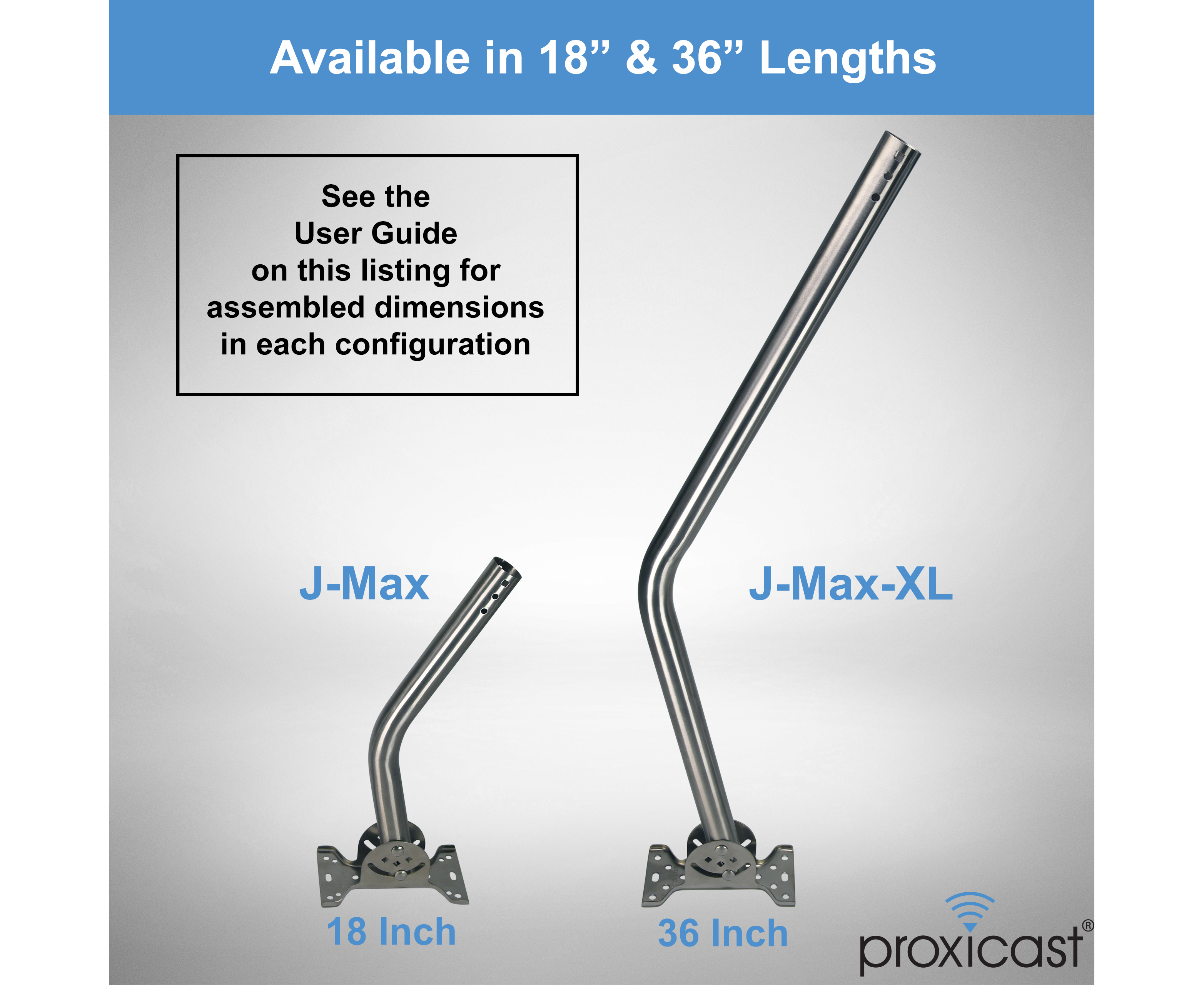 - Title: Proxicast Pro-Grade J-Max-XL 100% Aluminum Rustproof Antenna Mount - Universal Outdoor Adjustable Pivot/Lock Bracket & J-Pipe Mast (1.5" x 36" Pole) for Wall, Eave, Gable, Chimney or Roof Mounting
