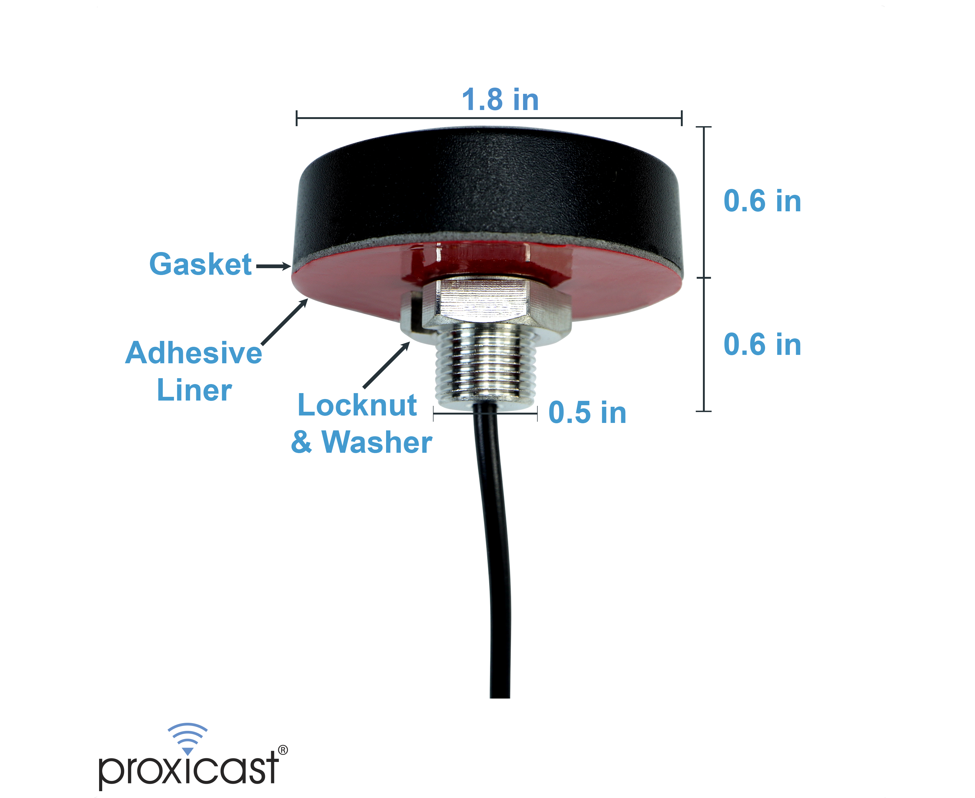 - LOW PROFILE - 0.6 inches High x 1.8 inches Diameter - SMA Male Connector with 18 in Coax Cable