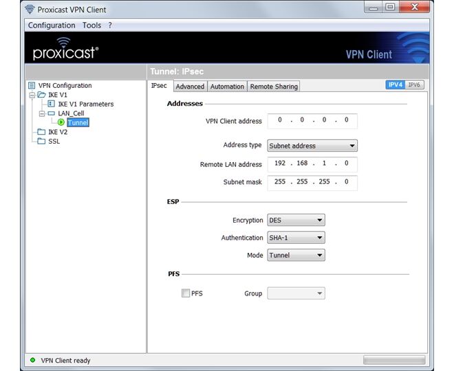 The Proxicast VPN Client is a software VPN solution that allows a user to establish a secure connection to remote devices over the Internet. It is the perfect companion product for secure remote access to your VPN enabled cellular router.