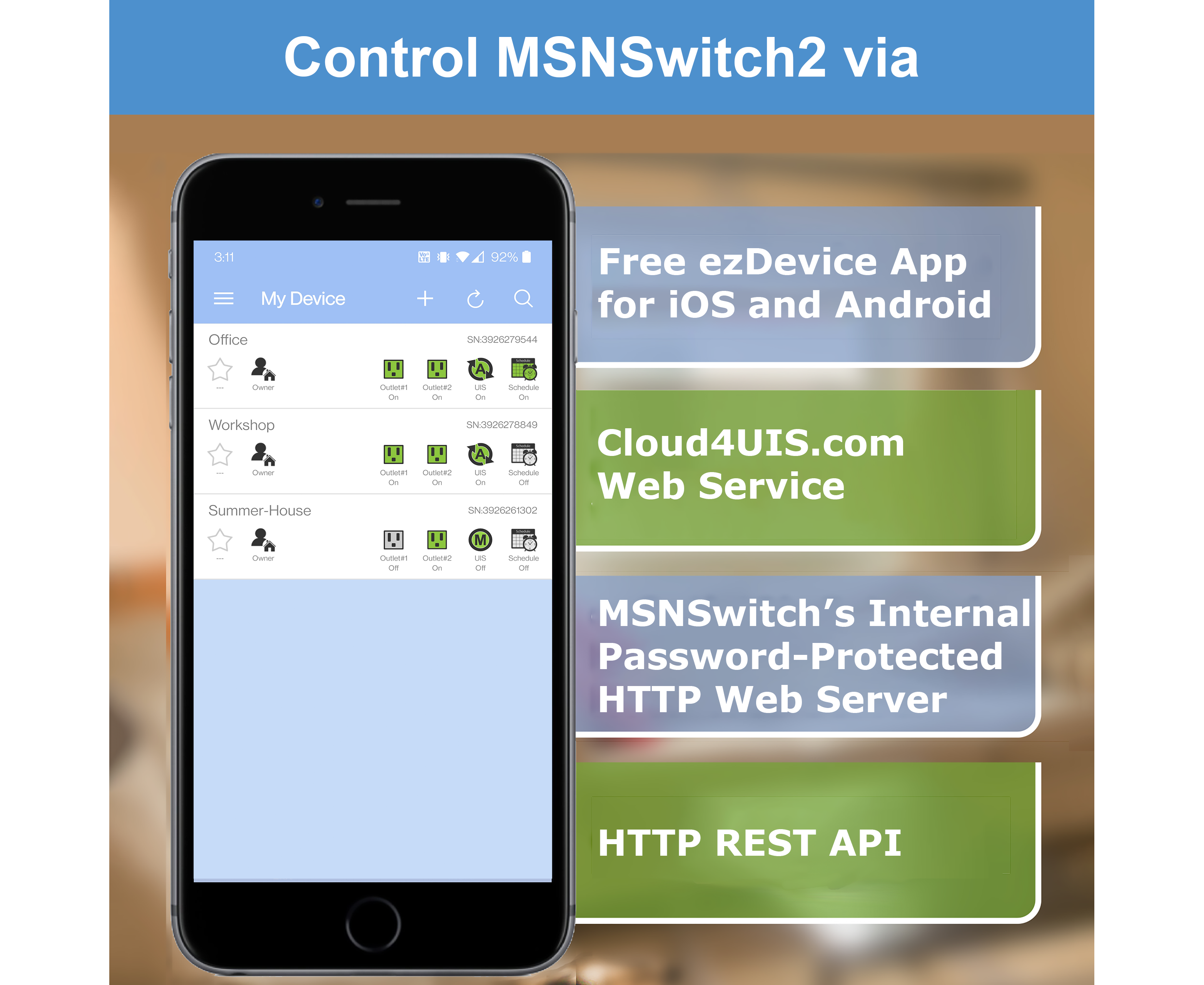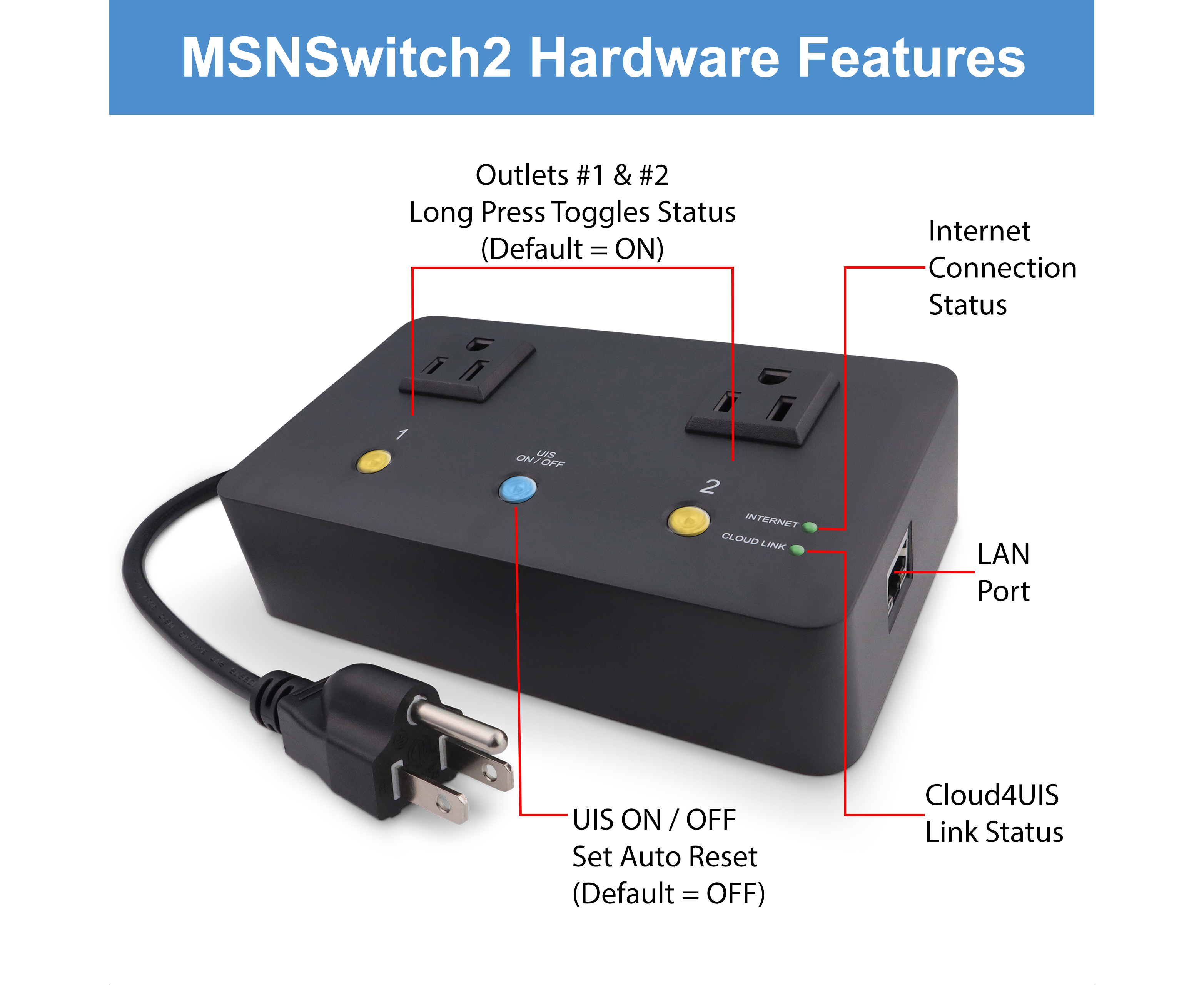 - Title: MSNSwitch2 Internet Enabled IP Remote Power Switch with Reboot - Control via Smartphone App, Cloud Service, Web Browser or API - 2 Independent AC Power Outlets (Model UIS-722b)