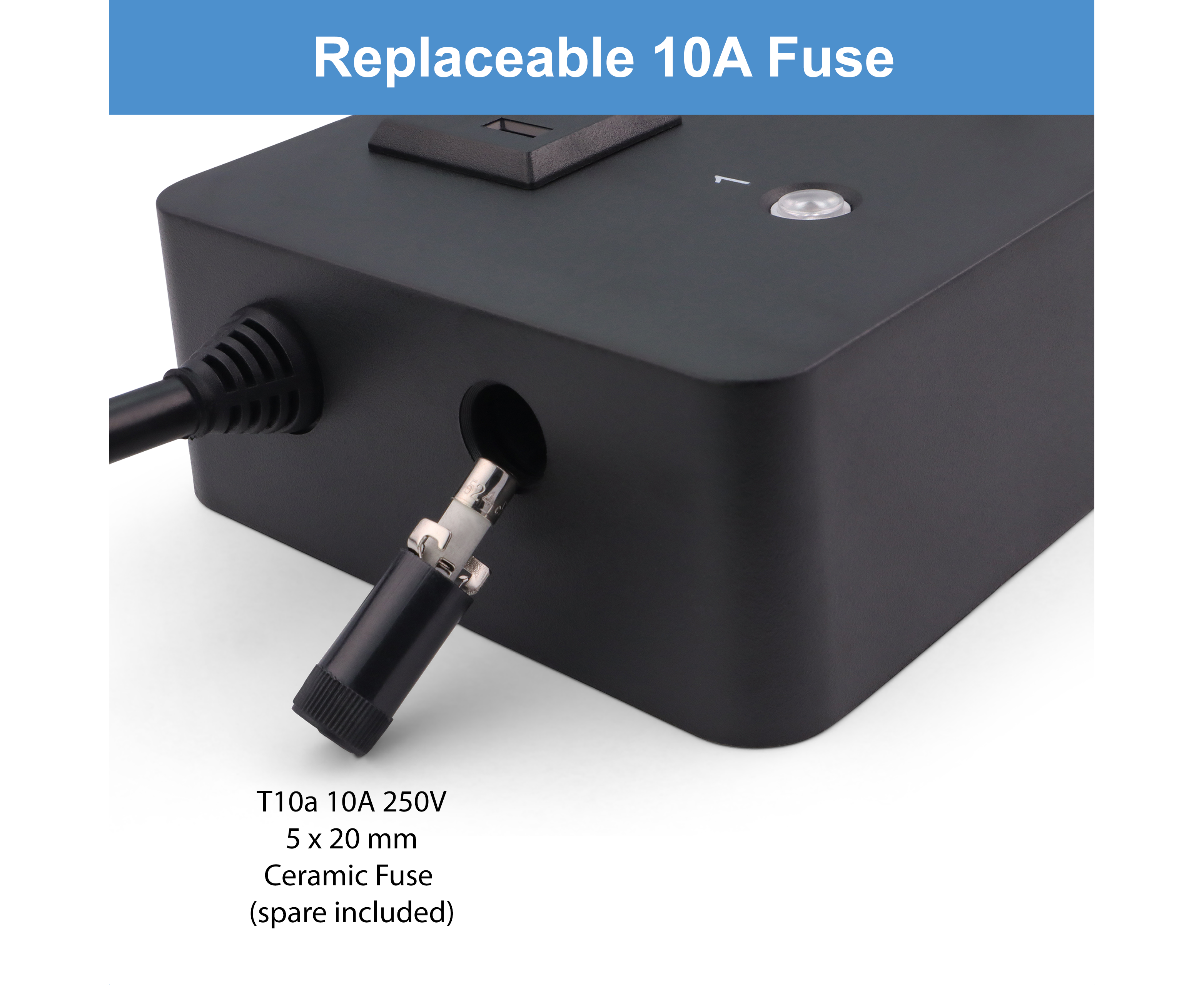 Fuse Type | T10AH250V Ceramic Slow Blow 5x20 mm (1 spare fuse included in power inlet port) |