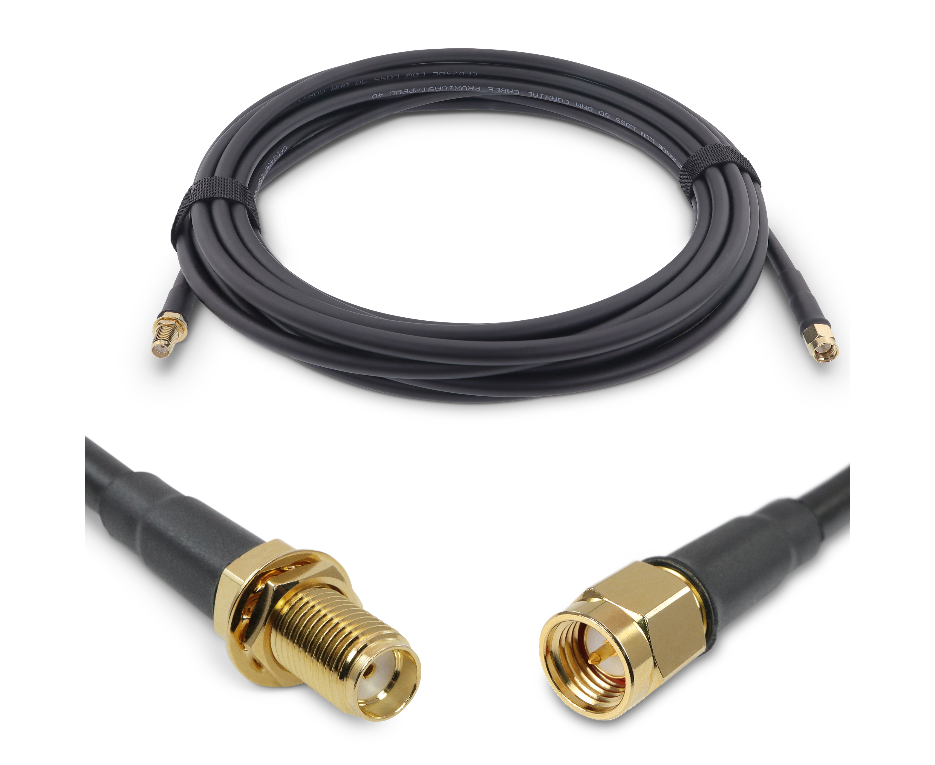 - SMA MALE TO SMA FEMALE COAXIAL JUMPER CABLE - Connects from SMA equipment (e.g. modem, router, booster) to SMA-style antennas