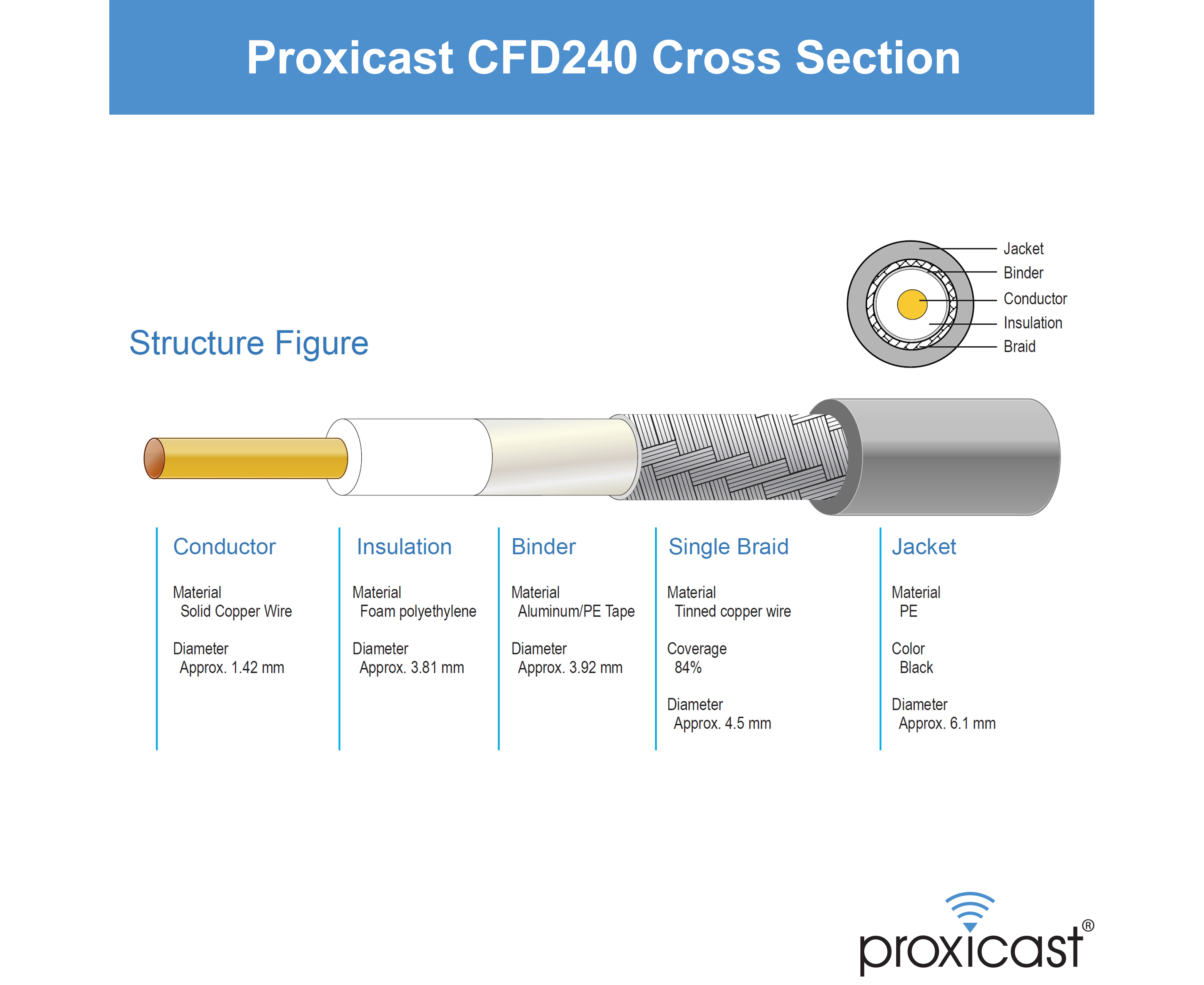 Low-loss CFD195-E (0.195 inch / 5 mm diameter) Meets or exceeds Times Microwave® LMR equivalent diameter coax Not rated for direct burial or plenum applications |